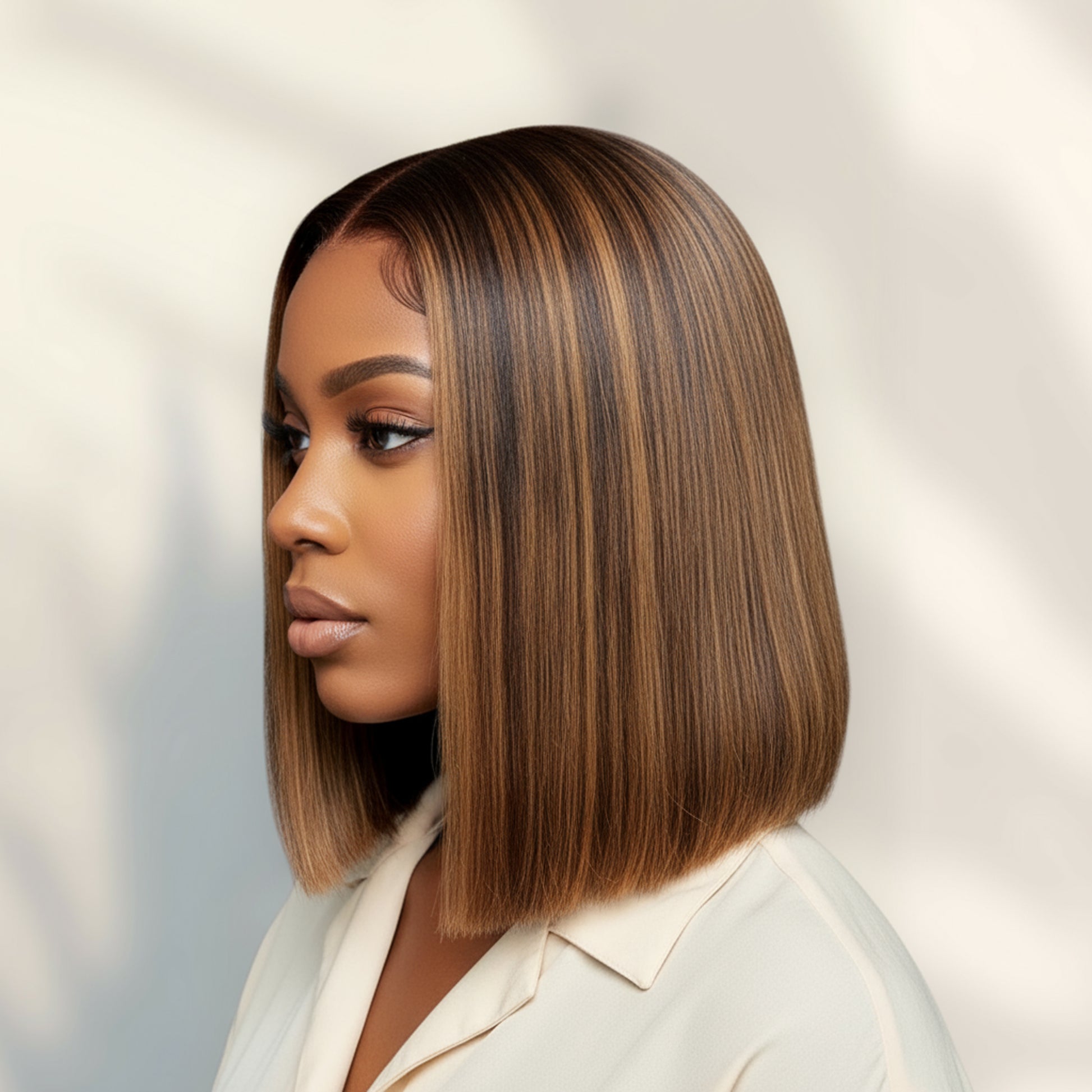 Radiate confidence and warmth with the Honey Blonde Highlight Wig — a luxurious glueless bob that blends rich caramel, honey, and golden tones with seamless HD lace perfection. Made from raw Indian cuticle-aligned human hair, this wig delivers a silky-smooth texture that’s soft to the touch and built to last.
